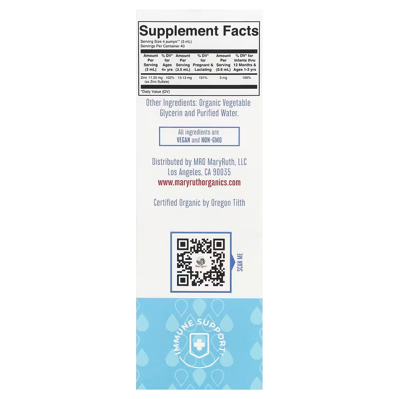 MaryRuth's, Organic Ionic Zinc Liquid Drops, Unflavored, 4 fl oz (120 ml) (11.25 mg per Serving)
