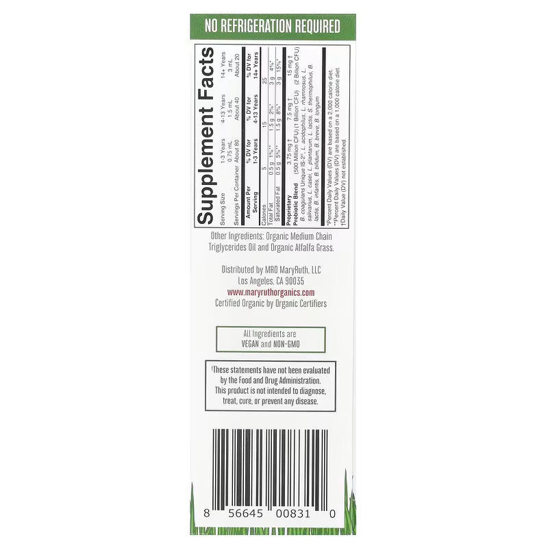 MaryRuth's, Organic Liquid Probiotic, Unflavored, 2 fl oz (60 ml)