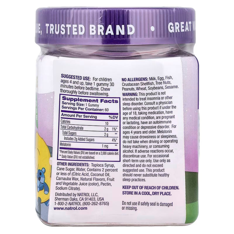 Help your child establish healthy sleep patterns with Natrol Kids Melatonin Gummies. Formulated specifically for children ages 4 and up, these raspberry-flavored gummies deliver a precise 1 mg dose of melatonin to support natural sleep onset. Each bottle contains 60 gummies, providing a month-long supply to assist with occasional sleeplessness. Melatonin works with your child's natural sleep cycle without causing dependency or morning grogginess.