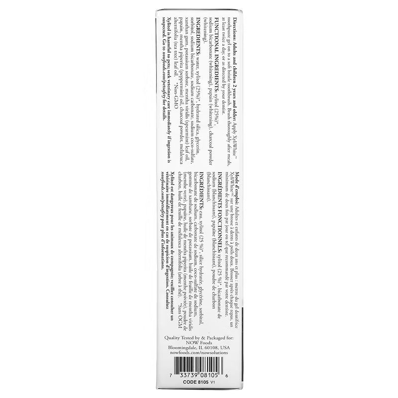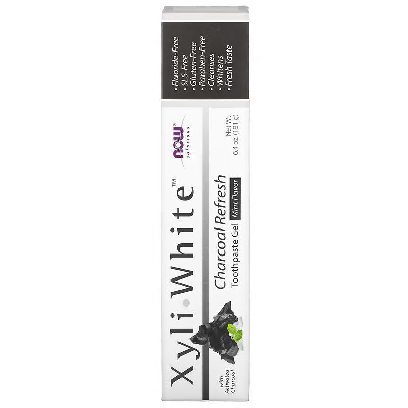 NOW Foods XyliWhite Charcoal Refresh Toothpaste Gel combines activated charcoal with xylitol for superior oral care. This mint-flavored formula effectively removes surface stains while neutralizing bacteria that cause bad breath. The 6.4 oz (181 g) tube delivers a refreshing clean without harsh abrasives or fluoride, making it ideal for daily use in a comprehensive dental hygiene regimen.