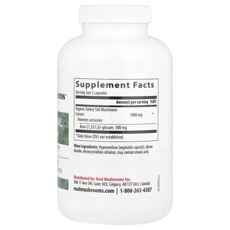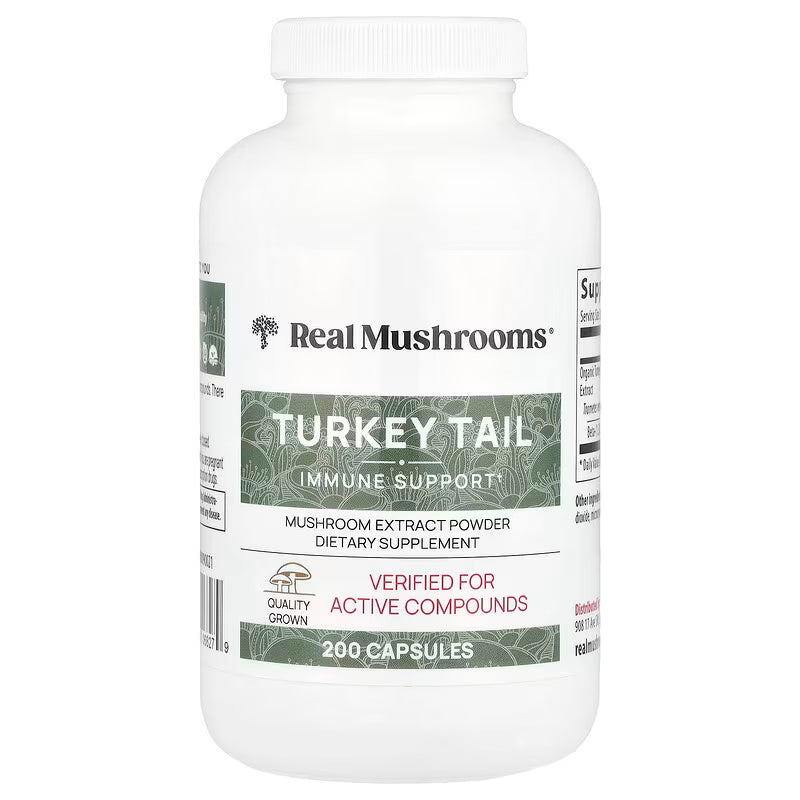 Real Mushrooms, Turkey Tail, Mushroom Extract Powder, 200 Capsules